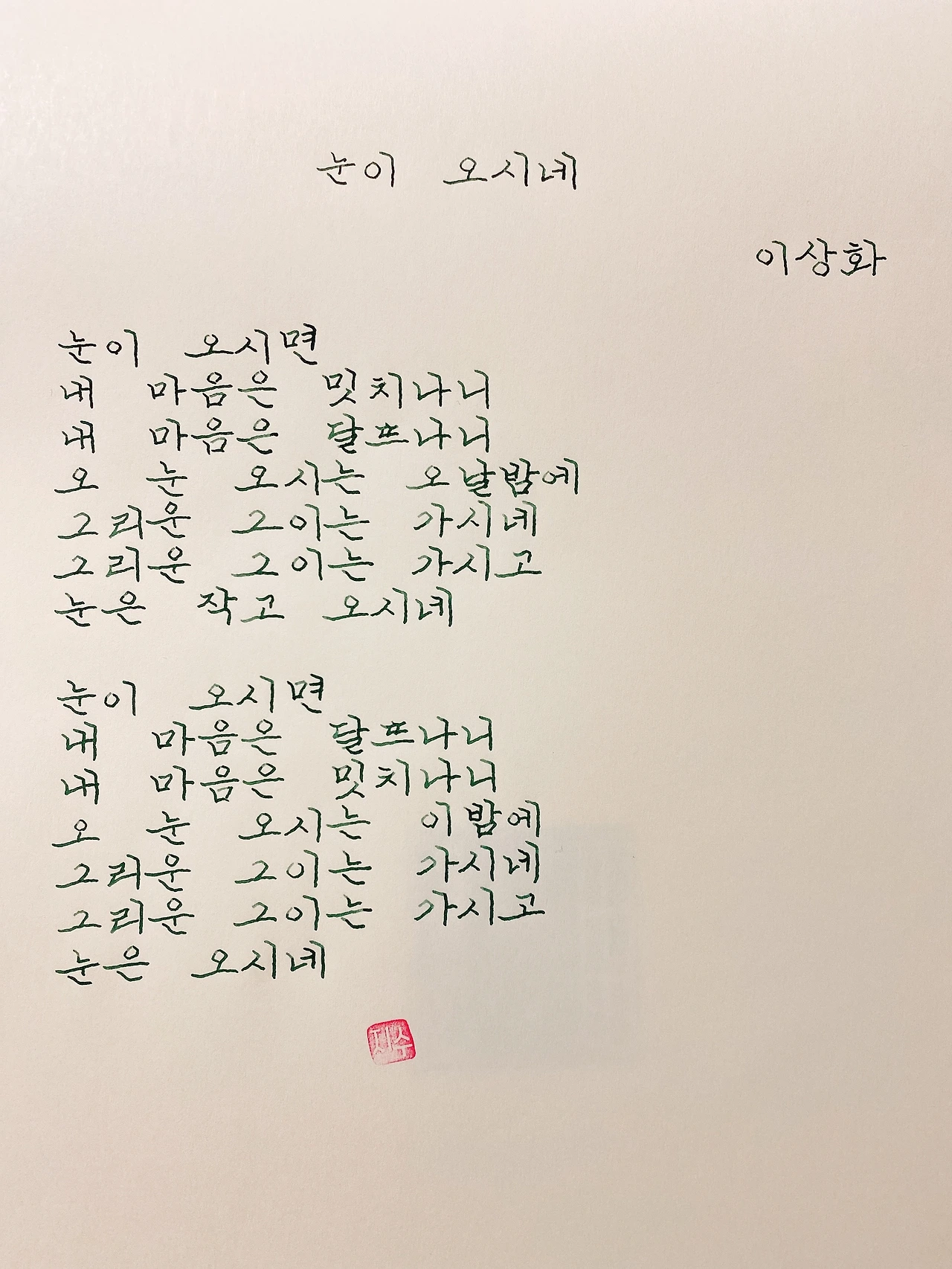 평범한 직장인. 사내 동호회를 통해 매일 한편 손으로 시 읽기를 시작한 이후로, 매일 시 한편을 필사 합니다. 필사한 시가 저작권에 문제가 된다면 말씀해주세요.