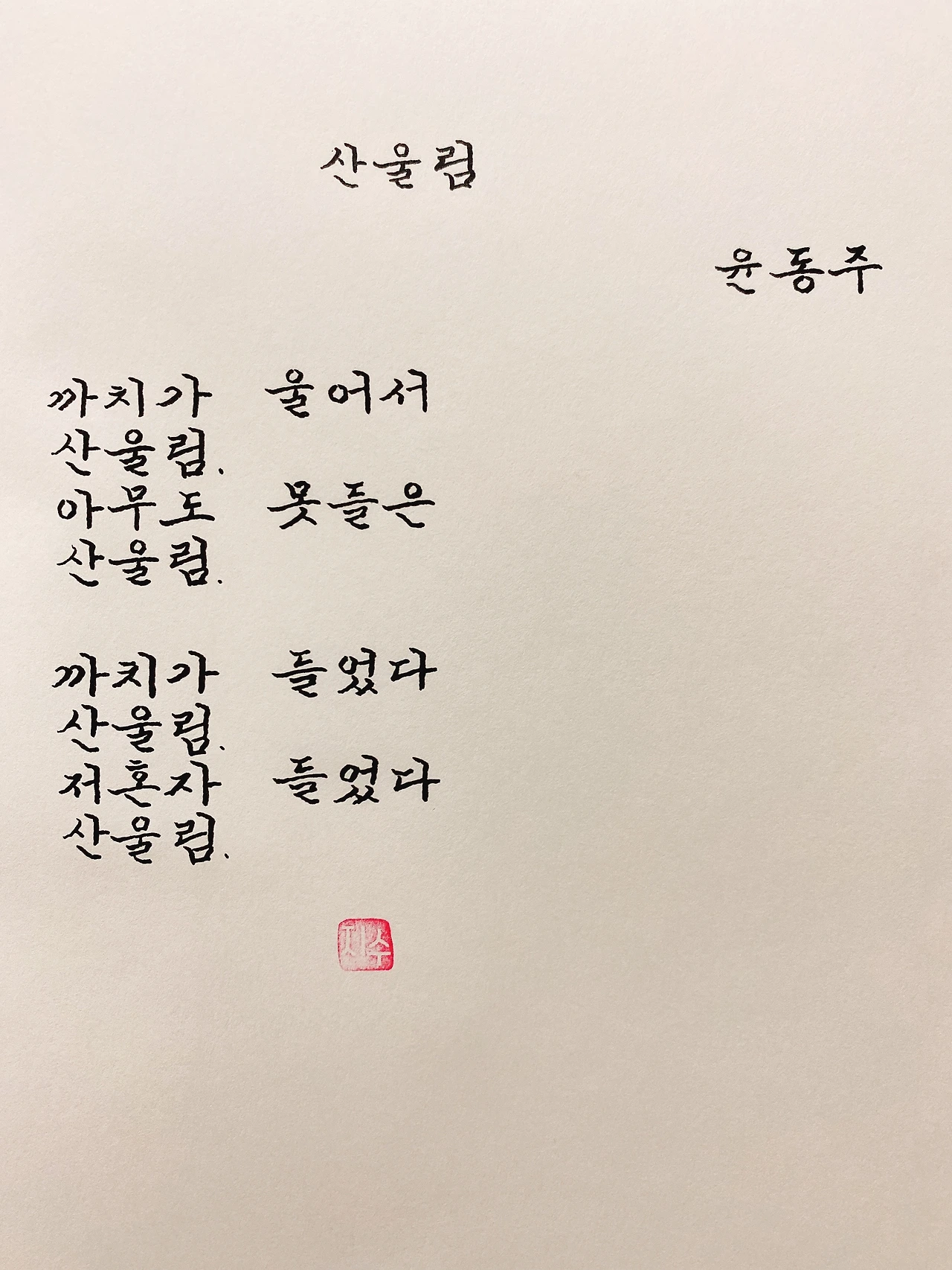 평범한 직장인. 사내 동호회를 통해 매일 한편 손으로 시 읽기를 시작한 이후로, 매일 시 한편을 필사 합니다. 필사한 시가 저작권에 문제가 된다면 말씀해주세요.