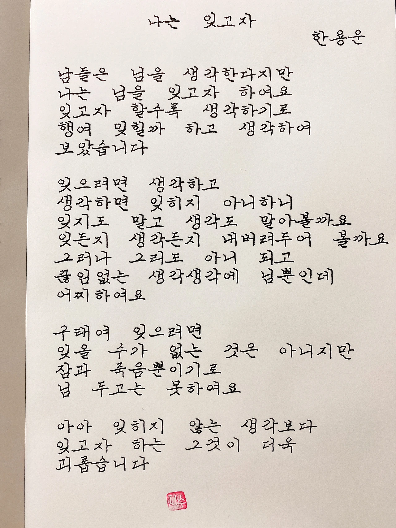 끊임없는 생각생각에 님뿐인데 어찌하여요