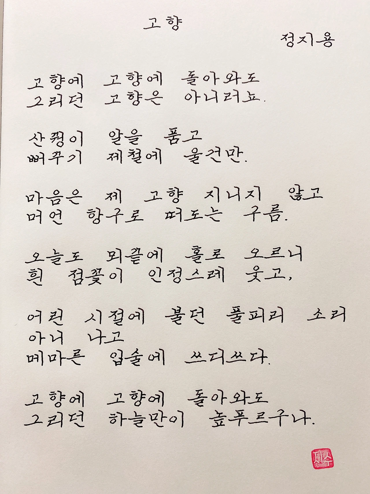 평범한 직장인. 사내 동호회를 통해 매일 한편 손으로 시 읽기를 시작한 이후로, 매일 시 한편을 필사 합니다. 필사한 시가 저작권에 문제가 된다면 말씀해주세요.