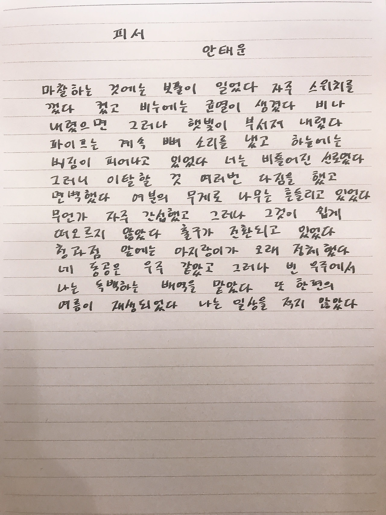 또 한 편의 여름이 재생되었다 나는 일상을 적지 않았다