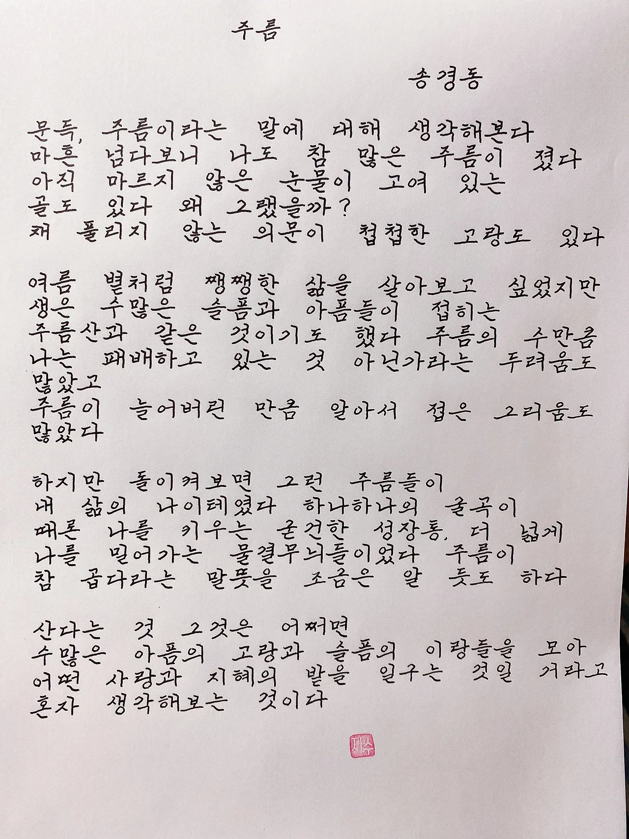 마흔 넘다보니 나도 참 많은 주름이 졌다