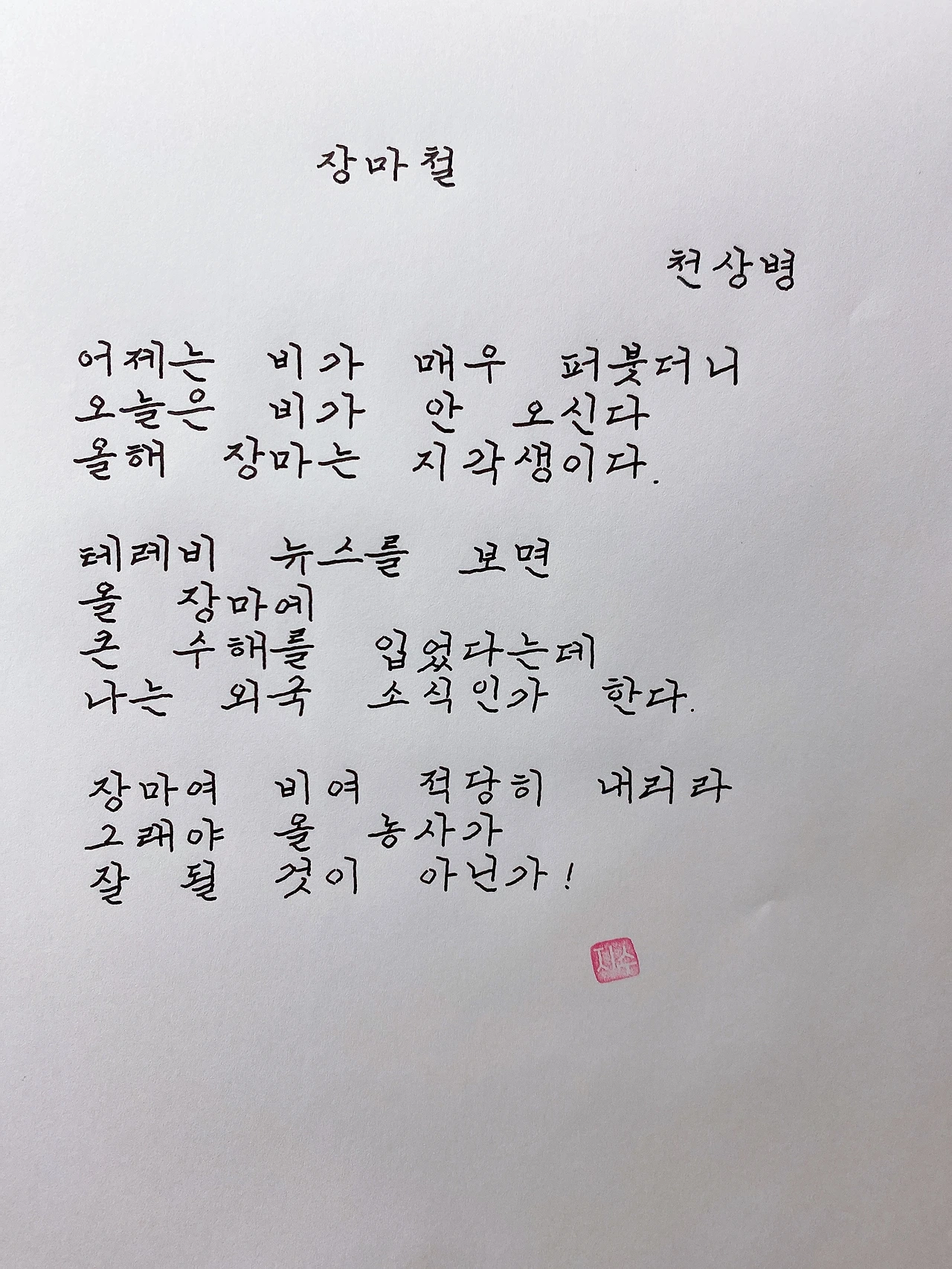 장마여 비여 적당히 내리라