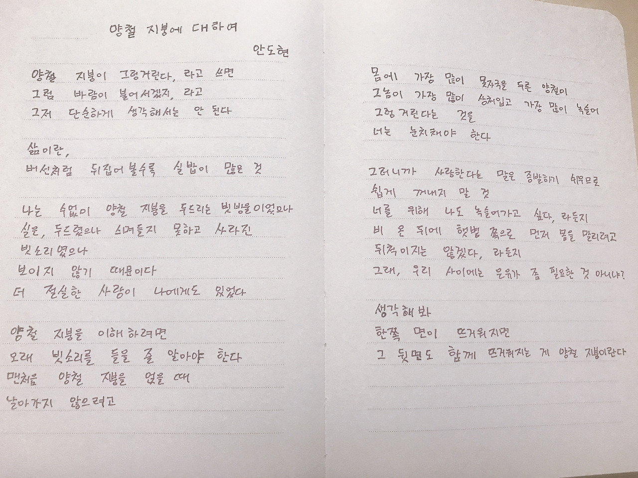 비 온 뒤에 햇볕 쪽으로 먼저 몸을 말리려고 뒤척이지는 않겠다, 라든지