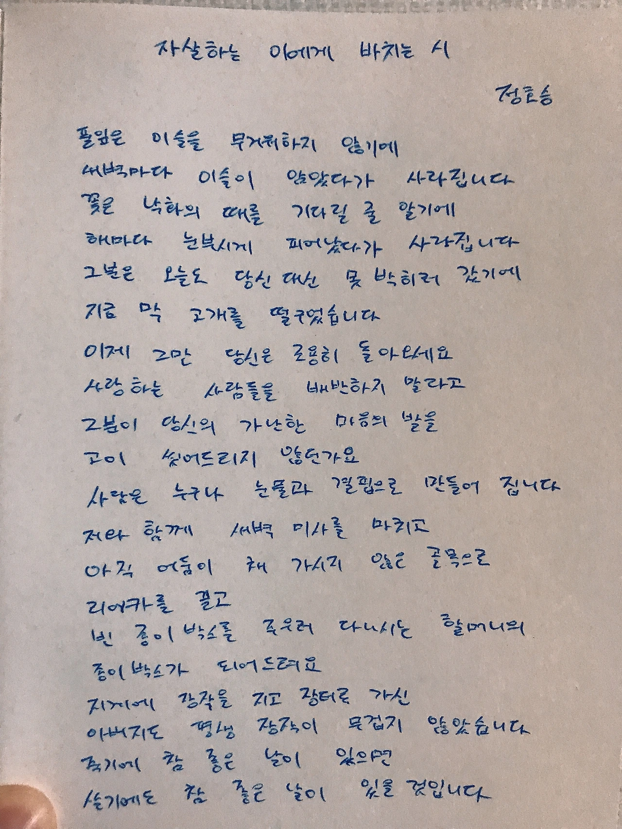 [1026] 자살하는 이에게 바치는 시 , 정호승