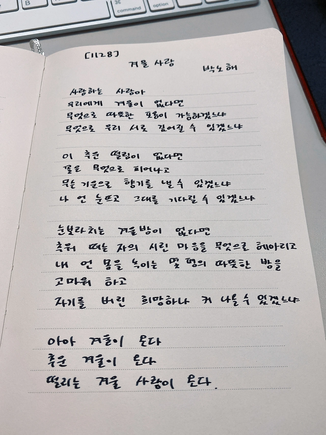 내 언 몸을 녹이는 몇평의 따뜻한 방을 고마워 하고