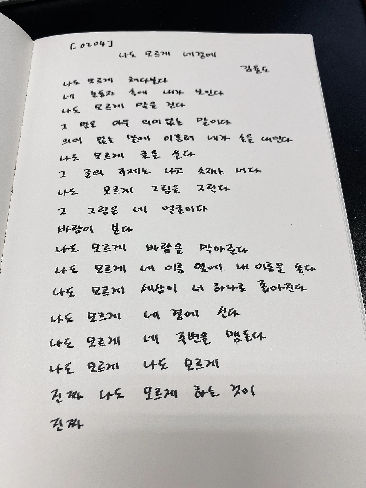 나도 모르게 네 이름 옆에 내 이름을 쓴다