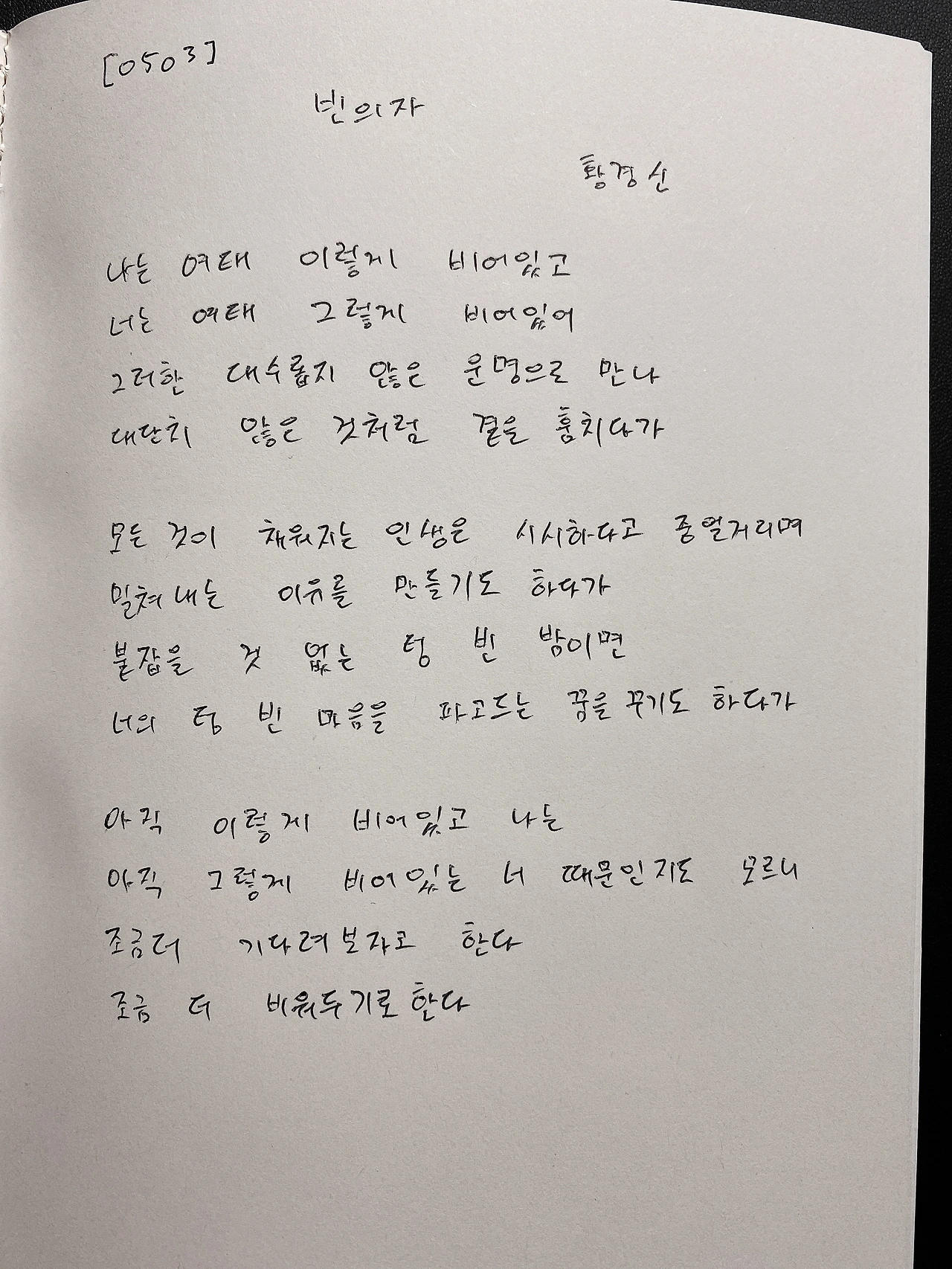 나는 여태 이렇게 비어있고