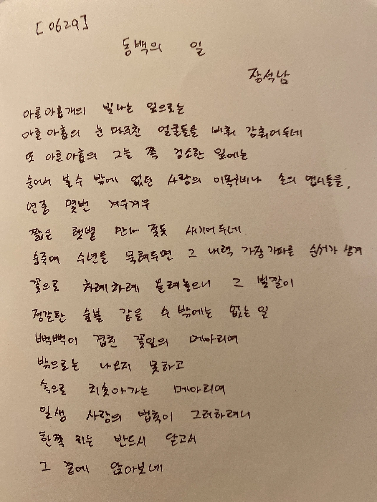 동백의 일 by 장석남