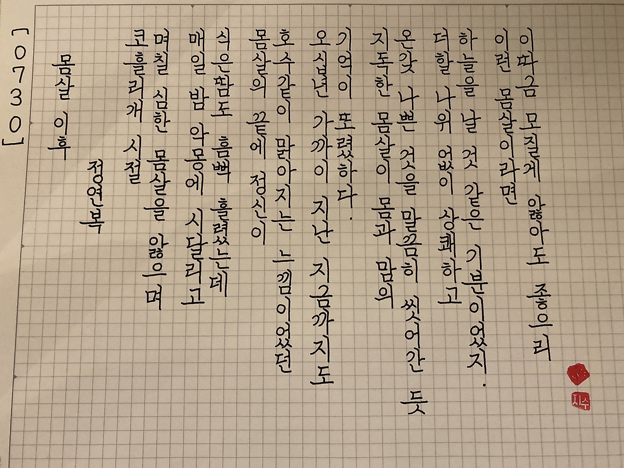 "아직 갈길이 멀다.. 좀더 반듯하고 정갈하게 쓰고 싶다"