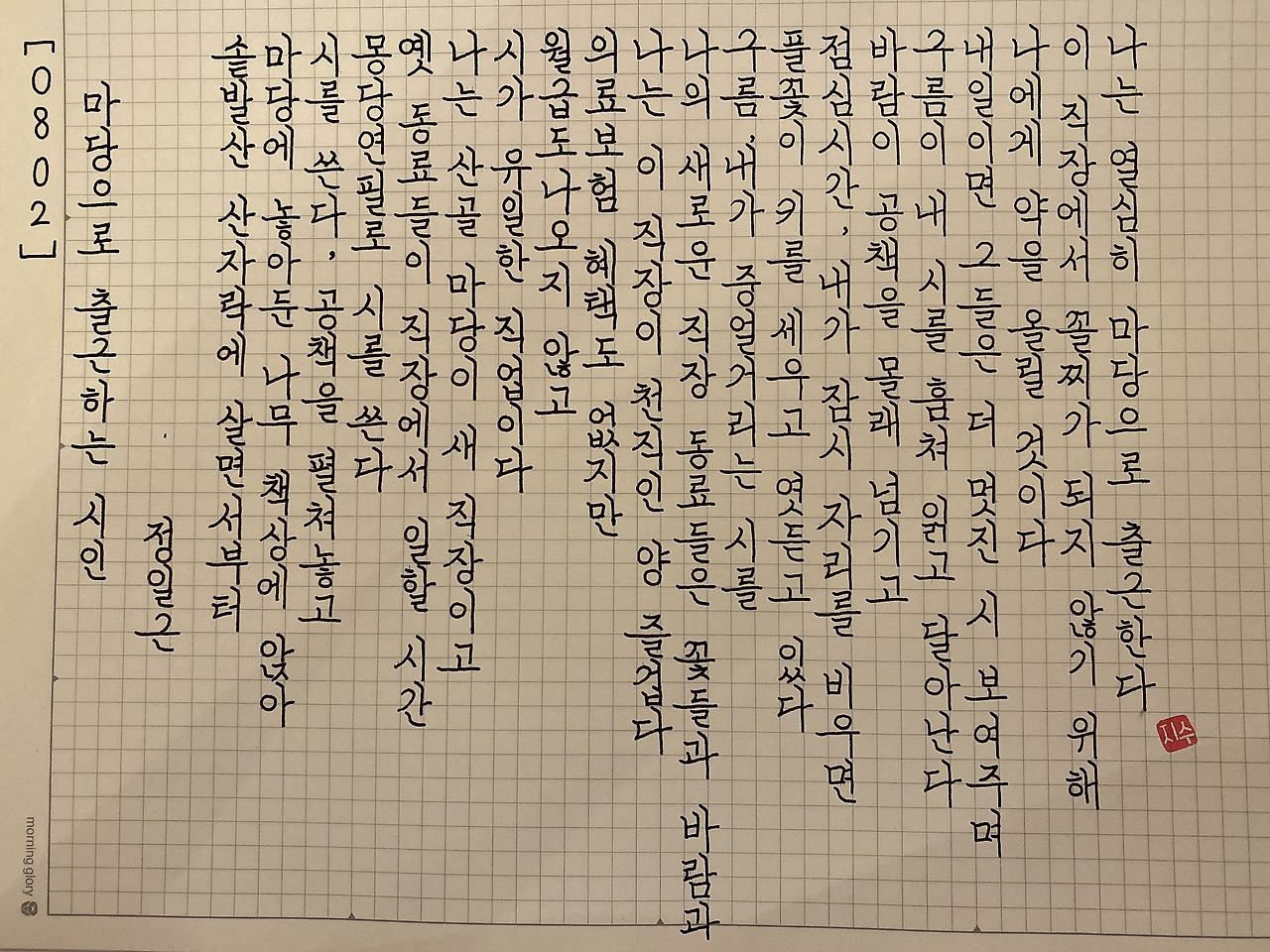 시(詩)를 쓴다, 공책을 펼쳐놓고