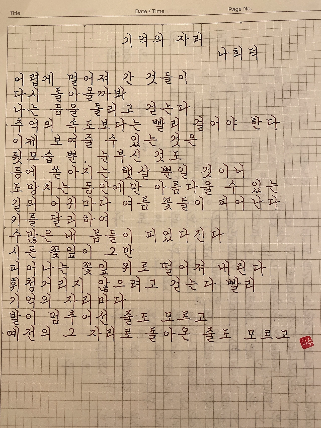기억의 자리- 나희덕