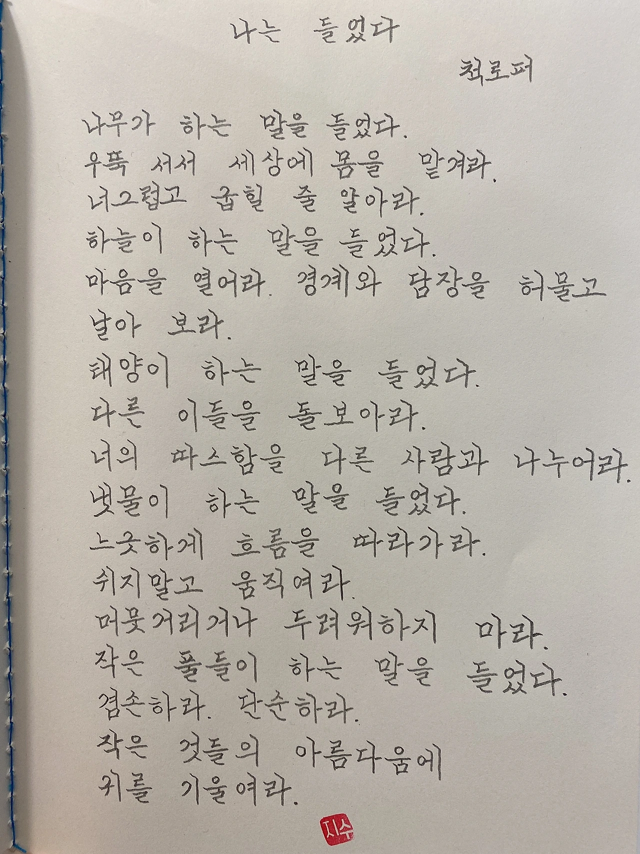 하늘이 하는 말을 들었다.
