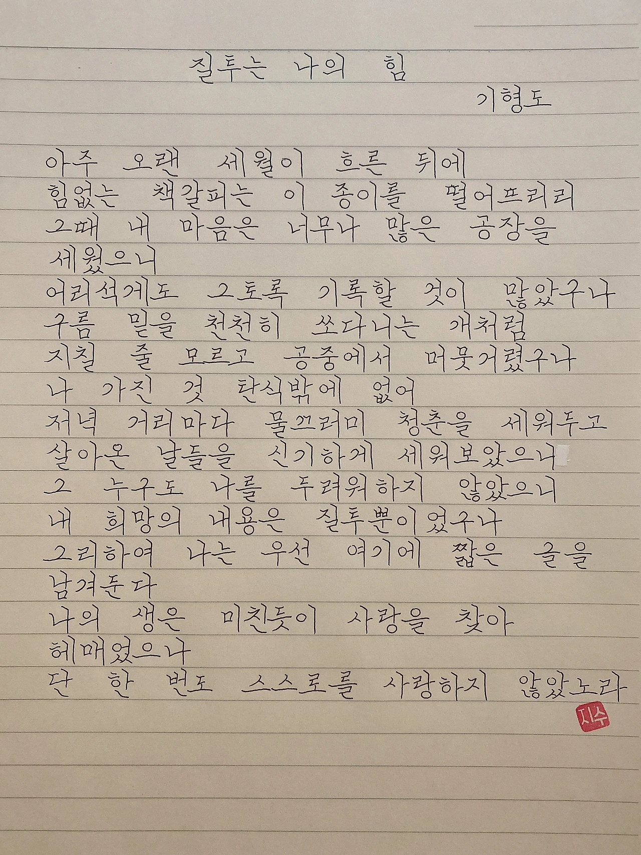 나의 생은 미친 듯이 사랑을 찾아 헤매었으나