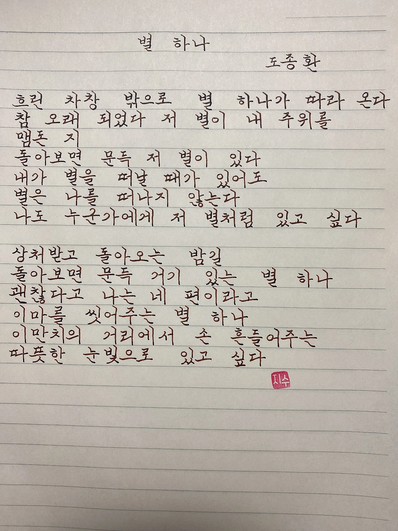 나도 누군가에게 저 별처럼 있고 싶다
