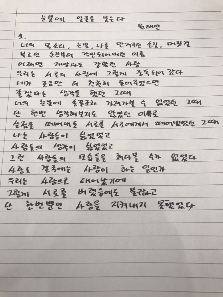 눈물에 얼굴을 묻던 너의 모습이 아련하게 스쳐간다