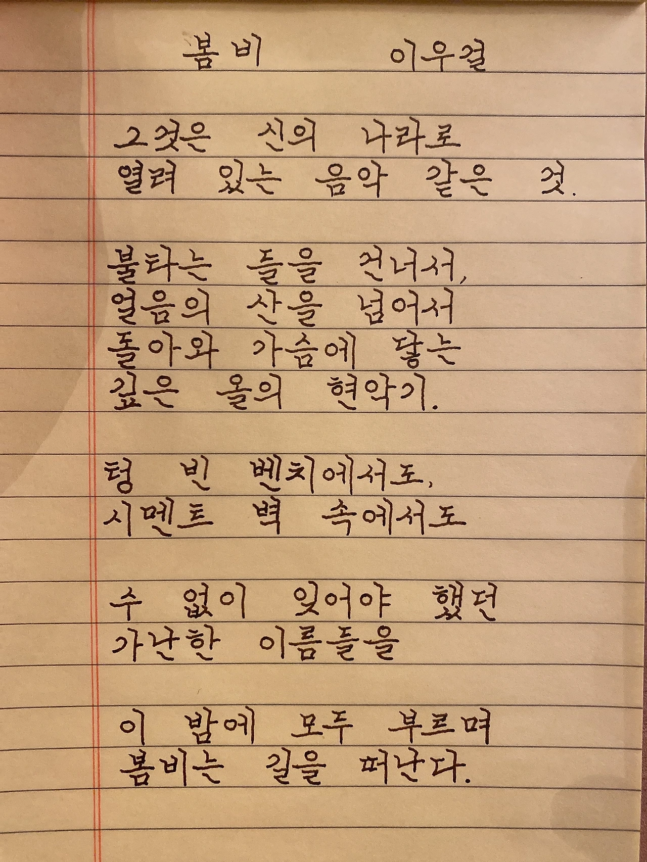 평범한 직장인. 사내 동호회를 통해 매일 한편 손으로 시 읽기를 시작한 이후로, 매일 시 한편을 필사 합니다. 필사한 시가 저작권에 문제가 된다면 말씀해주세요.