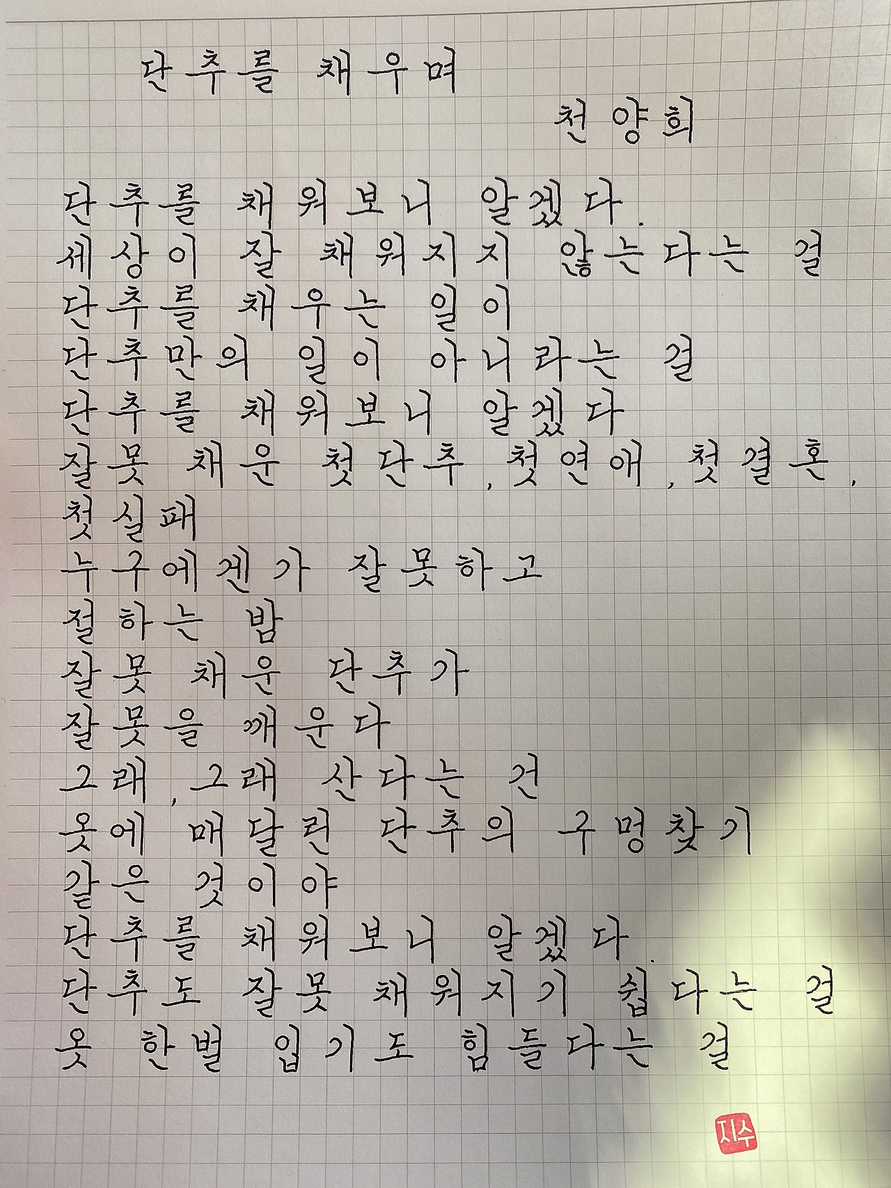 단추를 채우며 / 천양희