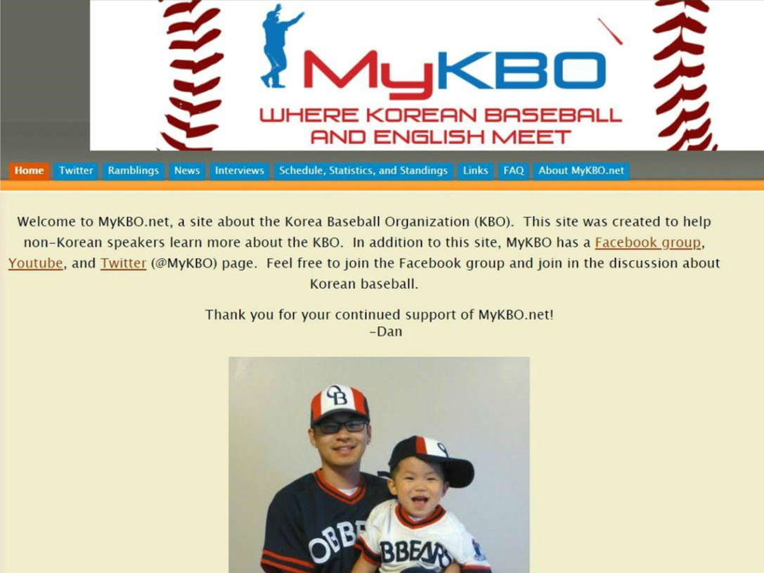 한국프로야구팀들에 대한 궁금증과 정보에 목말라서 여기저기 사이트를 찾던 사람들에게는 ESPN 이외에도 또 다른 한 줄기의 빛이 있었다. Dan Kurtz가 운영하는 mykbo.net라는 사이트이다. 40살 일반인 Dan Kurtz는 한국에서 태어났지만 미국가정으로 입양되어 19세때 입양인 투어로 한국에 갔다가 일년 후 재방문하여 한국프로야구에 관심을 가지게 되었고 2003년부터 KBO 관련 영문사이트를 오픈했다고 한다.
