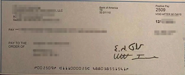 그러고 나서 1주일 정도 지나자 지인으로부터 수표를 받았다고 카톡이 왔다. 아래 수표에는 없지만 수표 윗부분에는 수표를 발행한 날짜들이 적혀 있었는데 관리사무소가 말한 발송 날짜와 차이가 많이 났다. 결론: 관리사무실은 한국에 2차 발송하지 않았었고(아직까지 못 받음), 내가 보낸 최후통첩 이메일을 이들이 받기 전에는 지인에게 수표를 발송하지 않았던 것이다.