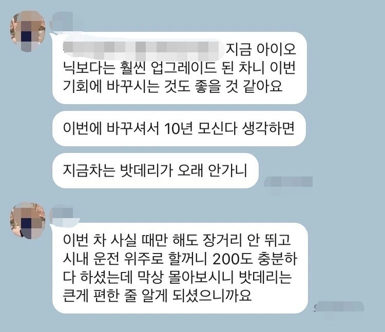 난 장모님에게 차값 5500만원 - 보조금 1200만원 - 중고차 1500-1700만원하면 3000만원 정도를 부담하시면 될 것 같다고 알려드렸다.