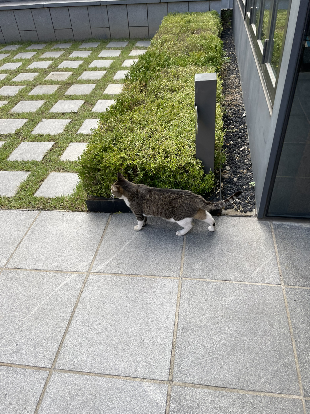 며칠간 보니 길순이는 낮에 한 번씩 어디에 있다가 회사 앞에 쓰윽 나오는데 사진을 찍히는 것보다 누가 옆에서 쓰다듬어 주면 좋아한다. 반려견이나 반려묘를 잘 모르는 나는 가까이 가지 않고 사진만 몇 장 찍어서 딸에게 보내줬다.