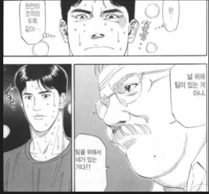 슬램덩크에서 안 감독과 재중군의 장면을 우리 부부에 맞게 재구성했다.