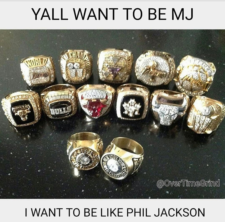 필 잭슨은 시카고와 LA 감독으로 11개 절대반지를 수집했고, 뉴욕 선수로서 2개를 수집했다. 총 13개 우승반지는 농구 명가 보스턴의 빌 러셀과 같은 반지의 수이다. 빌 러셀은 선수로 11개, 선수-코치로서 2개를 획득했다.