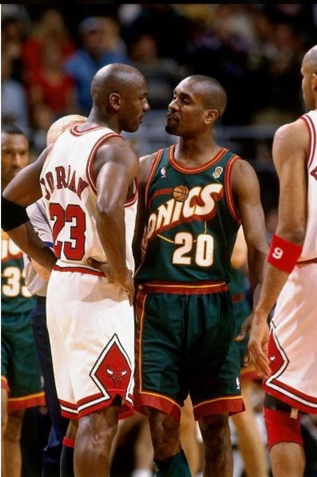 4. 게리 패이튼(시애틀 슈퍼소닉스) - 마이클의 네 번째 우승의 제물. NBA 최고의 트래쉬 토커. 수비로도 유명했지만 준수한 공격력을 가지고 있었다. 1992년 드림팀 멤버는 아니었지만 이후 명예의 전당 입성. 게리 아들은 현재 NBA 선수이지만 마이클 아들들은 NBA 근처도 못 갔으니, 2대에서 복수에 성공했다고 봐야 하나.
