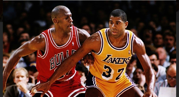 1. 매직 존슨(LA 레이커즈) - 마이클의 첫 번째 우승의 제물. 화려한 패싱 기술을 가진 매직은 이미 5번 우승을 했었다. 1991년 결승전은 80년대 최다 우승팀 LA이 90년대 최다 우승팀 시카고에게 권력을 이양을 해주는 상징성이 있었다. 매직은 마이클과 같이 1992년 드림팀 소속이었다. 이후 명예의 전당 입성.