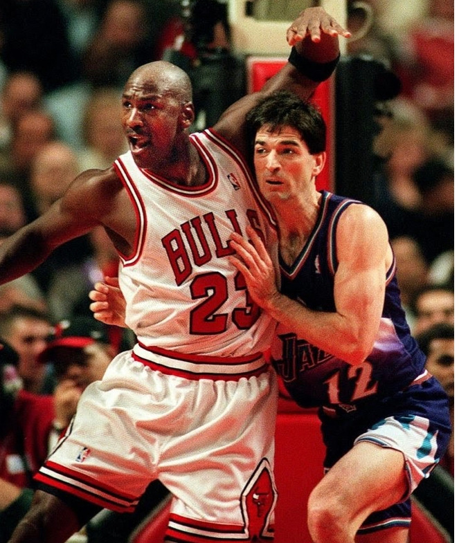 6. 존 스탁턴(유타 재즈) - 마이클의 다섯, 여섯 번째 우승의 제물. NBA 통산 어시스트와 스틸 1위. 칼 말론과 19년간 같이 한 팀에서 뛴 동료다. 본인은 마이클과 함께 1992년 드림팀 멤버였다. 이후 명예의 전당 입성.