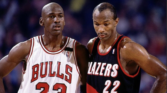 2. 클라이드 드렉슬러(포틀랜드) - 마이클의 두 번째 우승의 제물. 더 라스트 댄스에서 마이클은 자신이 더 잘하는데 언론에서 클라이드를 자신과 비교하는 것에 대해 기분 나빴다고 했다(쫌생이...). 클라이드는 포틀랜드를 두 번 준우승시켰고 본인은 마이클과 함께 1992년 드림팀 멤버였다. 본인의 요청에 따라 휴스턴으로 트레이드되어 1995년 우승을 맛본다. 이후 명예의 전당 입성.