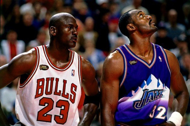 5. 칼 말론(유타 재즈) - 마이클의 다섯, 여섯 번째 우승의 제물. 뛰어난 공격력을 자랑하지만 마이클 때문에 득점왕을 한 적은 없다. 그래도 정규시즌 MVP 2차례 수상. 존 스탁턴은 19년간 같이 한 팀에서 뛴 동료다. 본인은 마이클과 함께 1992년 드림팀 멤버였다. 이후 명예의 전당 입성.