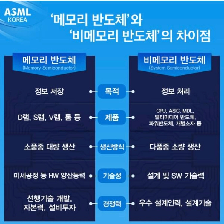 삼성은 1997년 핸드폰에 들어가는 두뇌 등을 설계하는 비메모리 반도체 조직을 세운다. 즉, 시스템 LSI 사업부의 탄생이다. 메모리 시장의 2.5배가 더 큰 비메모리 시장에 뛰어들기로 결심한 것이다. 아무래도 가격 변동성이 심한 메모리 시장보다는 훨씬 시장이 큰 비메모리 시장이 더 매력적이었을 것이다.