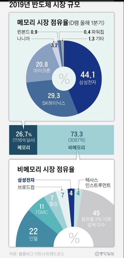 이 중 가장 성공적인 사례는 삼성전자가 일본 반도 체 회사들을 몰아내고 메모리 반도체 분야에서 1위를 한 것이다. 이 덕분에 삼성전자는 삼성 그룹의 매출의 70% 영업이익의 90% 가까이 차지한다. 괜히 삼성전자 외 계열사들을 삼성 후자로 구분하는 것이 아니다. 그리고 2018년 경우, 반도체 사업부가 삼성전자의 전체 영업이익 70%를 넘게 담당했다.