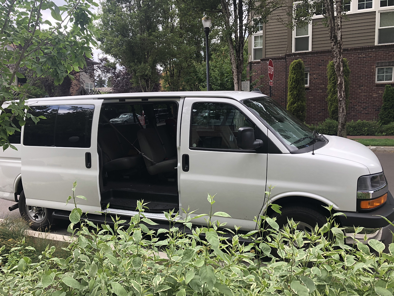 그리고 작년 일 년간 포틀랜드 생활을 위해 시애틀에 도착해서 포틀랜드로 운전할 때 어쩔 수 없이 빌린 차가 쉐보레 체비밴. 아무 무늬가 없는 흰색이라 잘못 보면 무슨 출장 청소나 전기 배선 수리 업무 하는 차량으로 오인하기 쉽다. 바리바리 싸들고 간 이민 가방이 8개라 이 차량 사이즈가 아니면 짐을 담기가 어려웠다. 삐뚤삐뚤한 산길을 오르고 내릴 때는 손에 땀이 났지만 그래도 무사히 집까지 도착했으니 임무 완료.