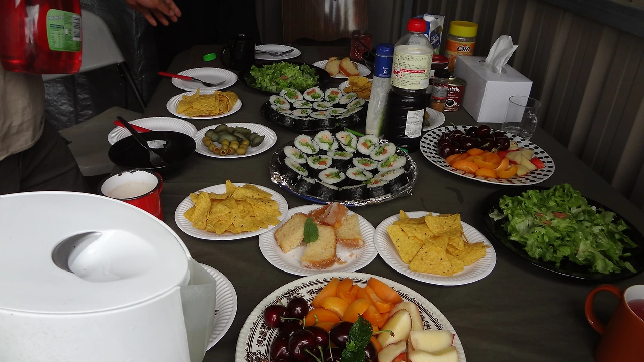 김밥, 샐러드, 그리고 오코노미야키까지 진수성찬이 준비되어 있었다.