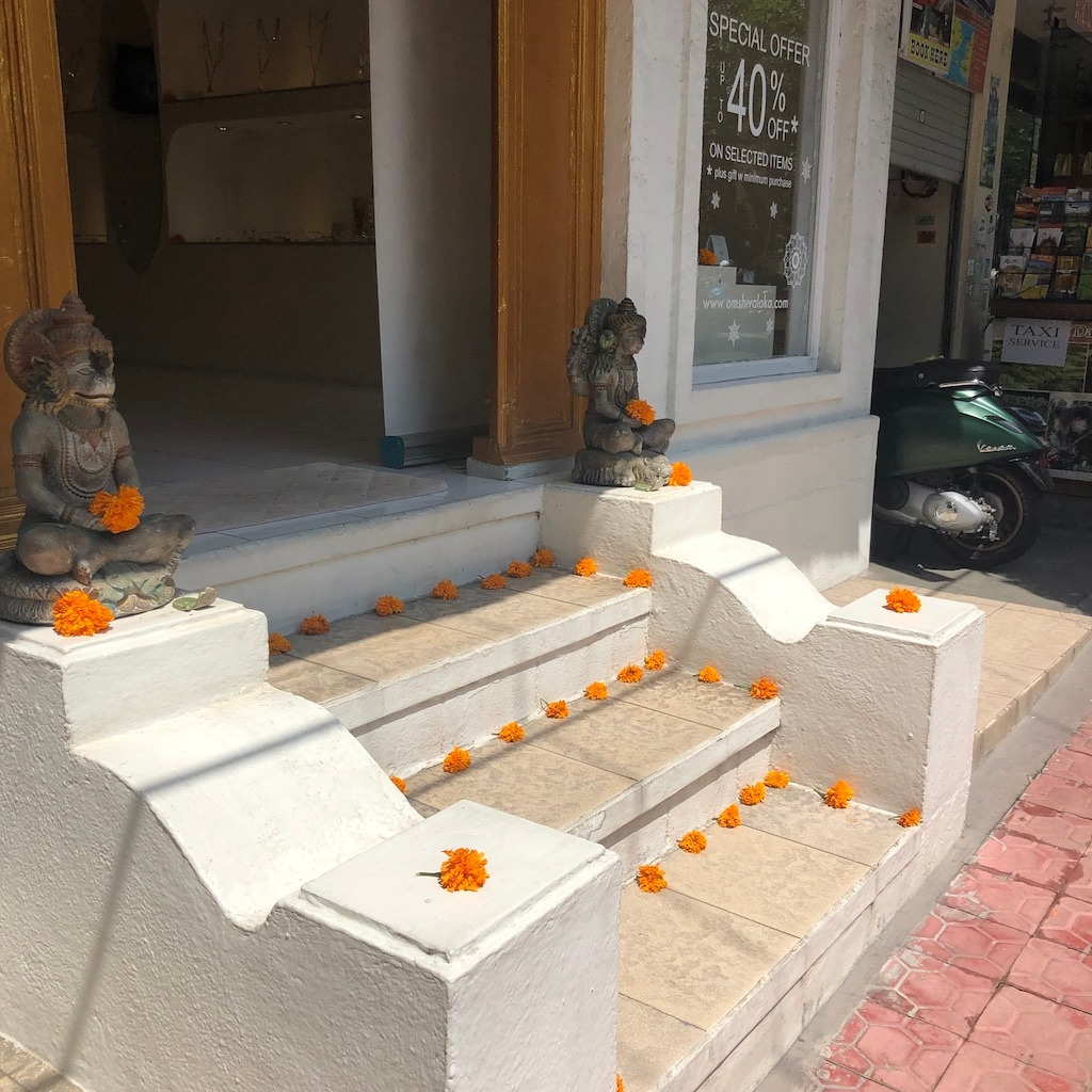 정말 희한하다고 생각하면서 고개를 들면, 길거리 마다 가로수 마냥 대나무 장식들이 늘어서있다. 알고 봤더니 용이 고개를 숙인 모형으로, 종교 행사가 있을 때마다 설치한다고 한다. 힌두교에서는 용이 굉장히 귀한 상징이어서, 신처럼 인간을 굽어본다는 의미로 이런 장식을 한다.