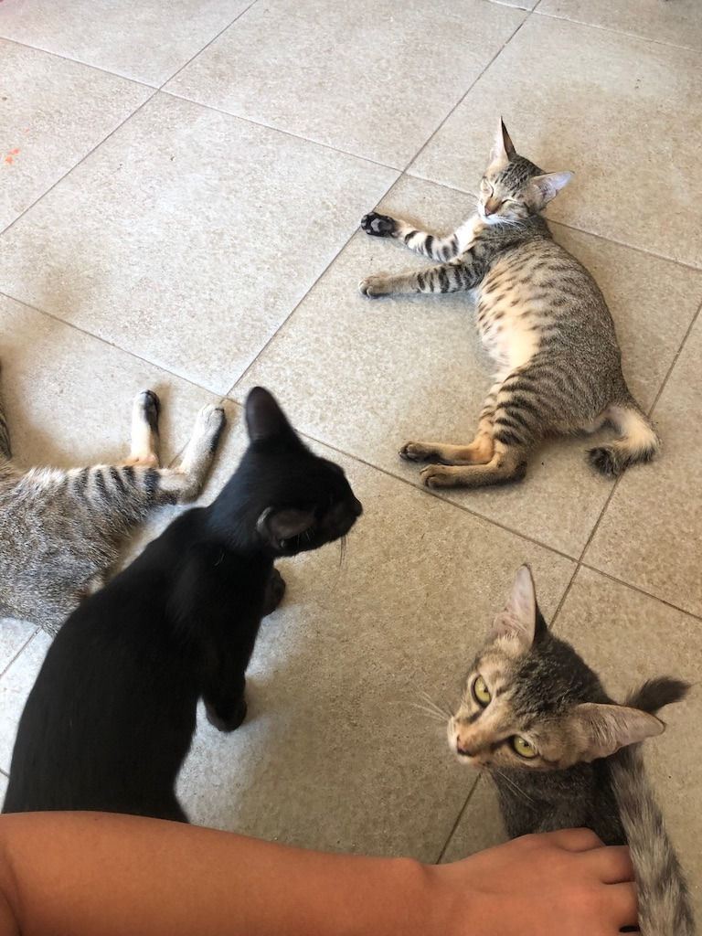 거북이와 함께 수영할 수 있는 길리섬의 또 다른 동물 친구는 단연 고양이다. 이 동네에는 뭐 이렇게 고양이만 있나 싶을 정도로 고양이가 정말 많다. 그리고 다들 안쓰러울 정도로 바싹 말랐고, 믿을 수 없이 조그맣다. 숙소 앞에라도 내놓고 싶어서 편의점 마다 고양이 사료를 찾았지만 없었다. 자전거를 대여해준 식당 사장님에게 혹시나 싶어 물어보니, 'Cats of Gili'라는 단체가 내 숙소 바로 옆에 있고 거기서 사료를 판다고 알려주었다. 이 단체는 GET의 하위 단체로, 수의사가 전혀 없는 길리섬의 길고양이—그들은 feline citizen, 고양이 시민이라고 부른다—들을 위해 세워진 전문 단체다. 이들은 길고양이 뿐만 아니라 사람들이 키우는 고양이들을 위한 의료 서비스를 제공하고 사료를 판매한다. 수익금은 길고양이를 돌보는 데에 사용된다. 작은 가게에 주먹 만한 고양이들이 열 마리 정도 머무르는데 그 귀여움에 심장이 박살나고, 지역 공동체가 자연과 공생하는 방법에 대해 고민하고 실천하는 길리섬 사람들에게 두 번째 박살나고 돌아왔다.