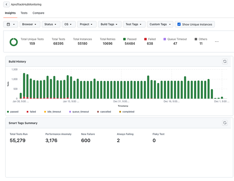 대부분의 환경에서는 온프레미스 인프라를 직접 구축하고 운영하는 것보다 클라우드 인프라를 활용하여 클라이언트 사이드에만 집중하는 방향이 여러 관점에서 효율적이고 기술적으로도 타당했던 경우가 많았습니다. 병렬 테스트 구성과 더불어 테스트 매니지먼트 자체에 대한 인프라도 함께 제공하기 때문에 대규모 테스트 커버리지를 적절한 디자인 패턴을 활용하여 잘 설계만 하고 서버 사이드로 요청만 보내는 방향이기 때문입니다.