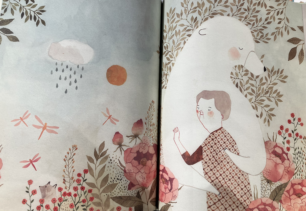 아주머니가 보내준 꽃 덕분에 곰은 더 이상 외롭지 않았습니다. 더 이상 투명한 채로, 회색빛으로 살아가지 않을 수 있었습니다.