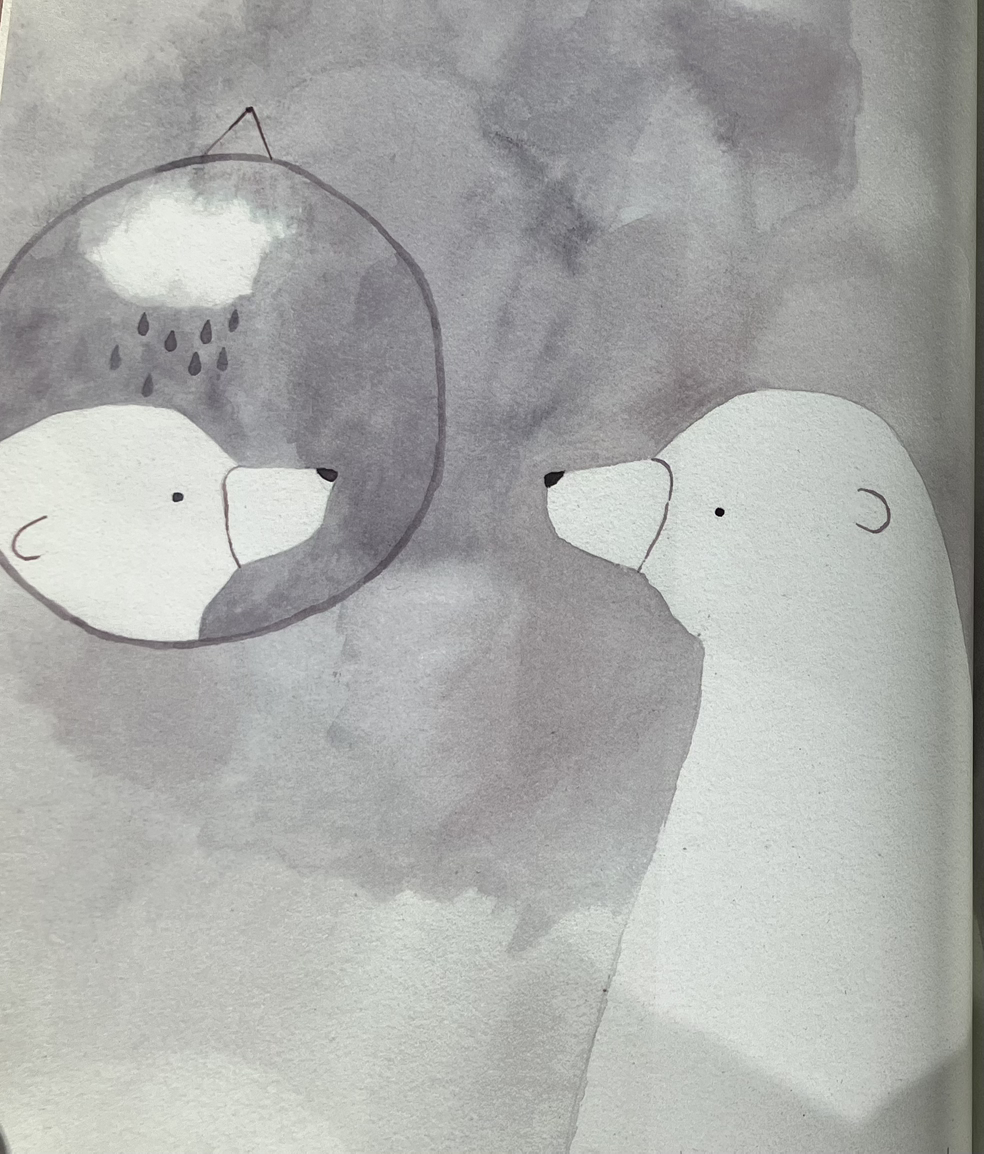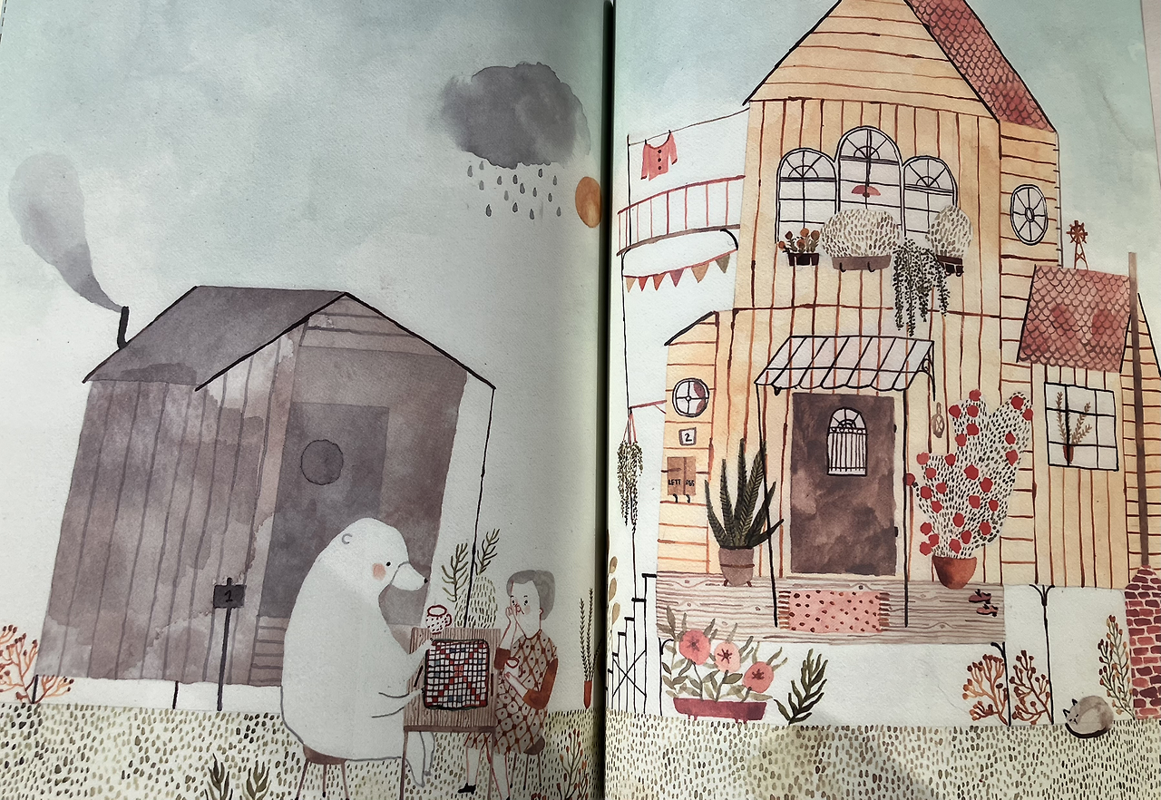 그전까지 고요하던 자신의 일상을 빼앗겨 버렸으니까요. 그러던 어느 날, 이상한 기운이 느껴져 곰은 빼꼼히 창 밖을 내다봅니다.