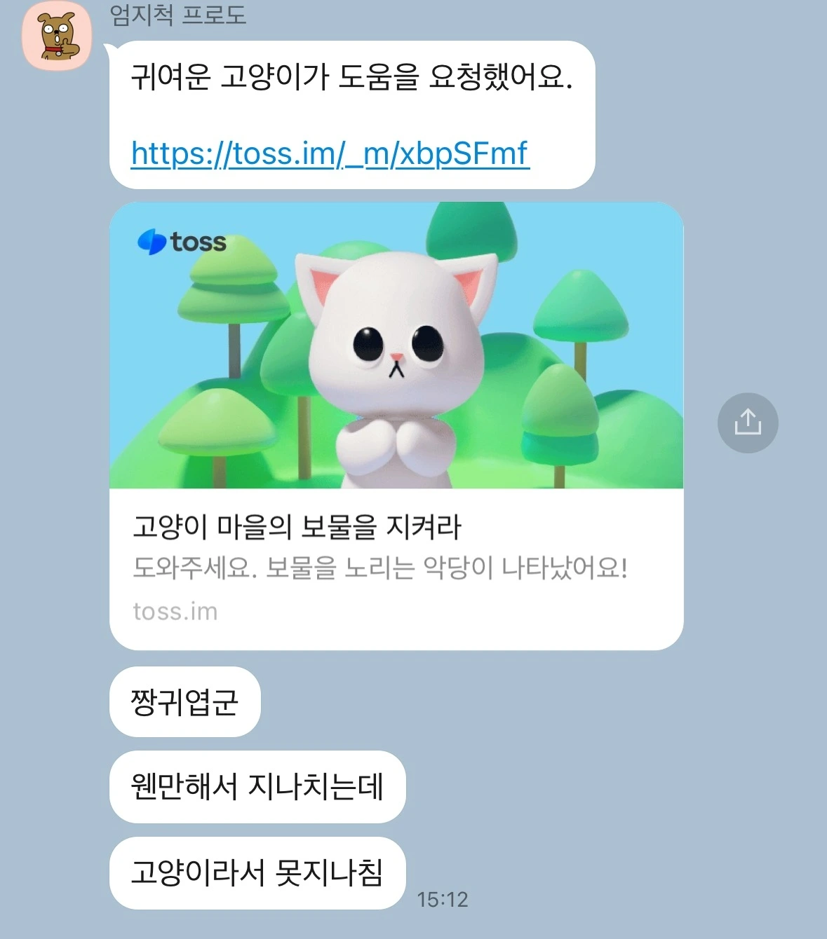 오늘 같은 회사 동료에게 카톡이 왔다. 평소에는 이벤트를 보내지 않는 친구인데 토스에서 귀여운 이벤트를 진행하고 있다고 링크를 보내줬었고 이벤트의 시작과 끝의 경험을 가볍게 공유해보려 한다.