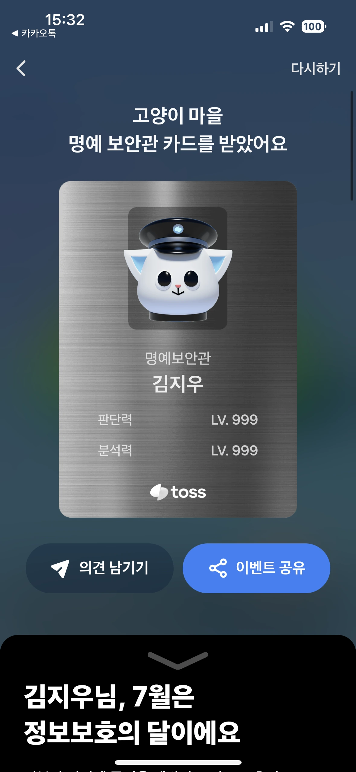 짧게 즐겁게 즐기고 나면 토스가 왜 이러한 이벤트를 만들었는지 이유를 알 수 있었다. 정보보호의 달을 맞아 진행한 이벤트였으며 해당 이벤트를 통해 무엇을 말하고자 하는지 알 수 있었다.