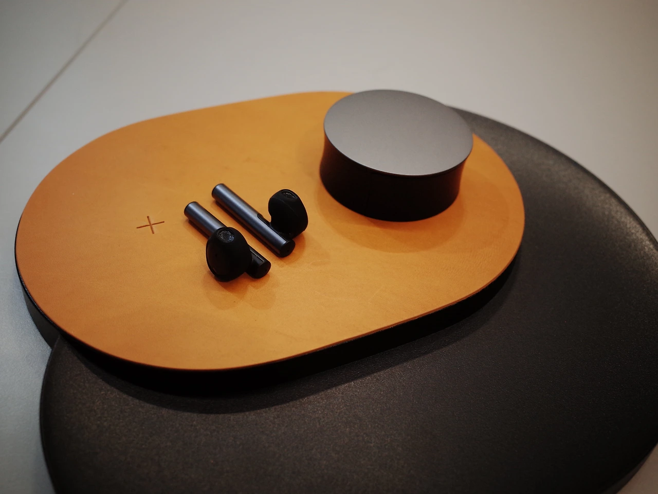 원형의 충전케이스의 디자인과 재질, 특히 곡면에 투박하지 않게 위치한 USB 단자와 버튼, 배터리 상태를 확인할 수 있는 라이트 그리고 커버를 열었을 때 고급진 파이프가 보인다.