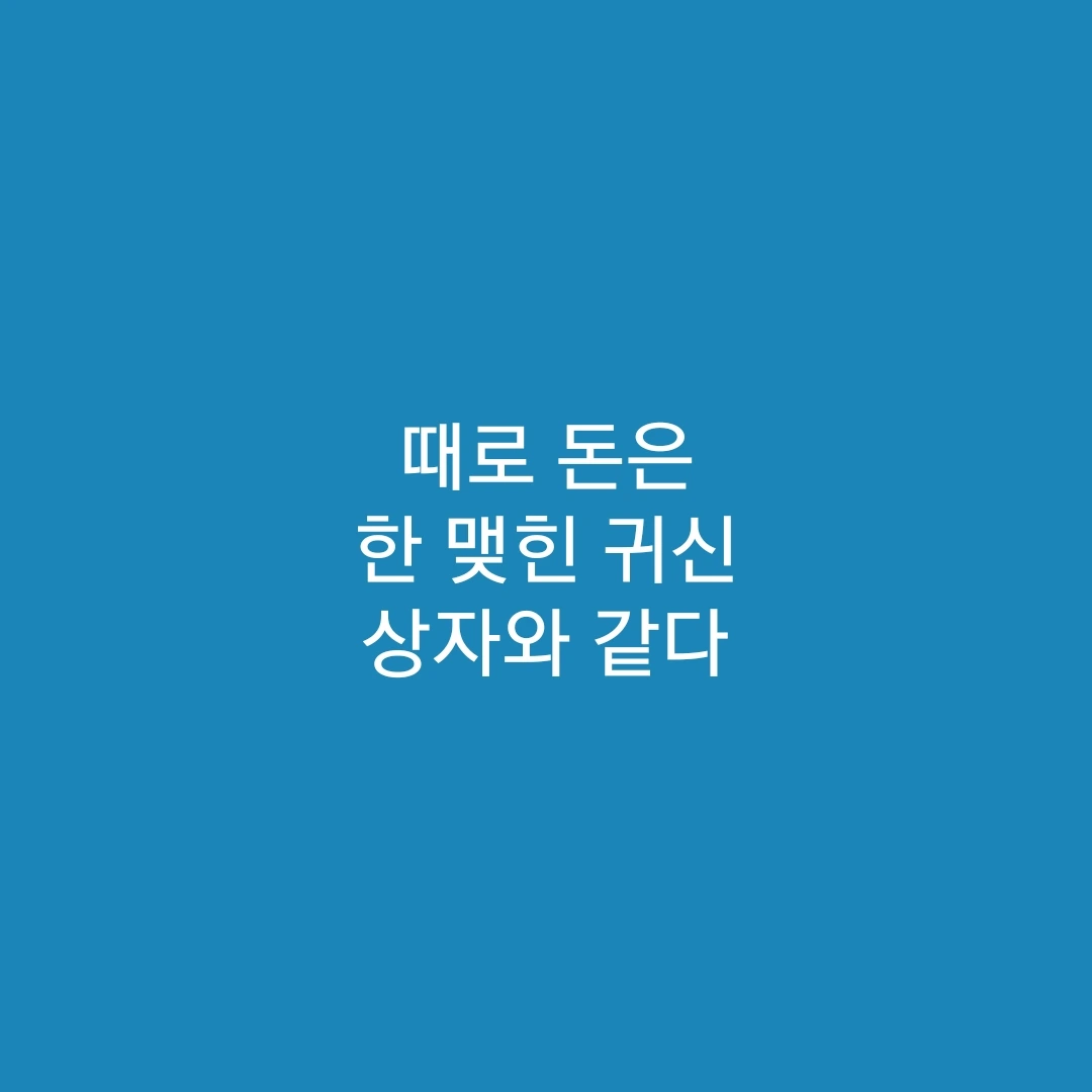 돈이 돈을 버는 시대라고 하고, 쉽게 돈 벌 방법이 있다는 광고가 온데간데 넘쳐나는 시대이지만, 그럴수록 돈은 주의하고 조심해야 할 대상이라고 생각한다. 돈은 인간의 모든 욕망과 희망과 증오와 슬픔이 어려 있는 한 맺힌 귀신 상자와 같은 것이어서, 그것을 함부로 다루었다가는 어떤 귀신에 씌일지 모를 일이다. 돈에는 늘 피눈물이 묻어 있고, 그것을 함부로 만지면 피눈물을 흘릴 수 있다는 점을 기억해야 한다.