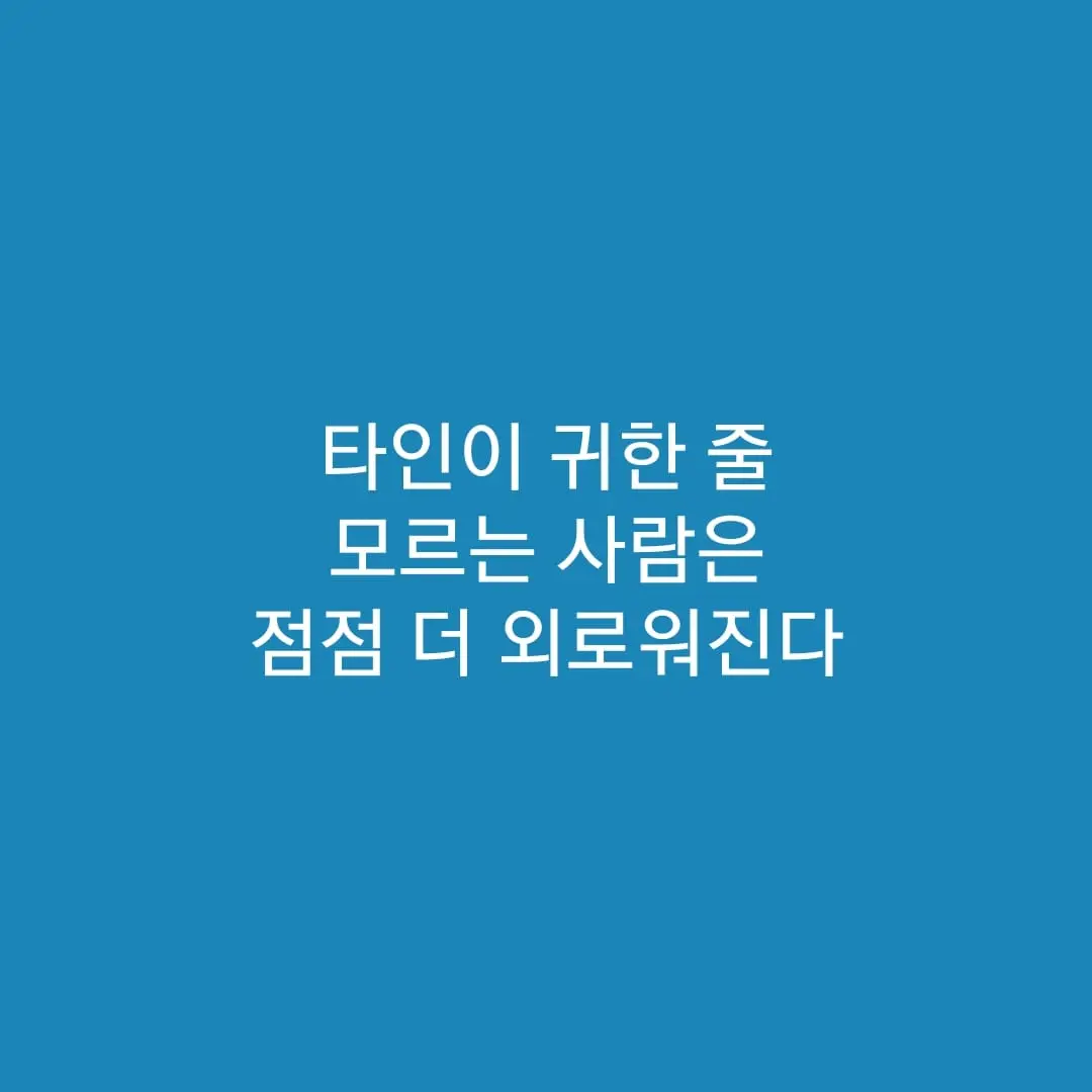 타인이 귀한 줄 모르고, 자기만 잘난 줄 아는 사람은 결국 외로워지는 것 같다. 사실 사람이 잘나봐야 얼마나 잘나겠으며, 그 잘남이라는 것도 타인들 없이는 대개 아무것도 아닌 경우가 많다. 자기만 잘난 줄 아는 사람일수록, 그 잘남을 인정해줄 누군가를 간절히 필요로 한다. 아무도 알아주지 않는 잘남을 결코 견디지 못하는 것이다.