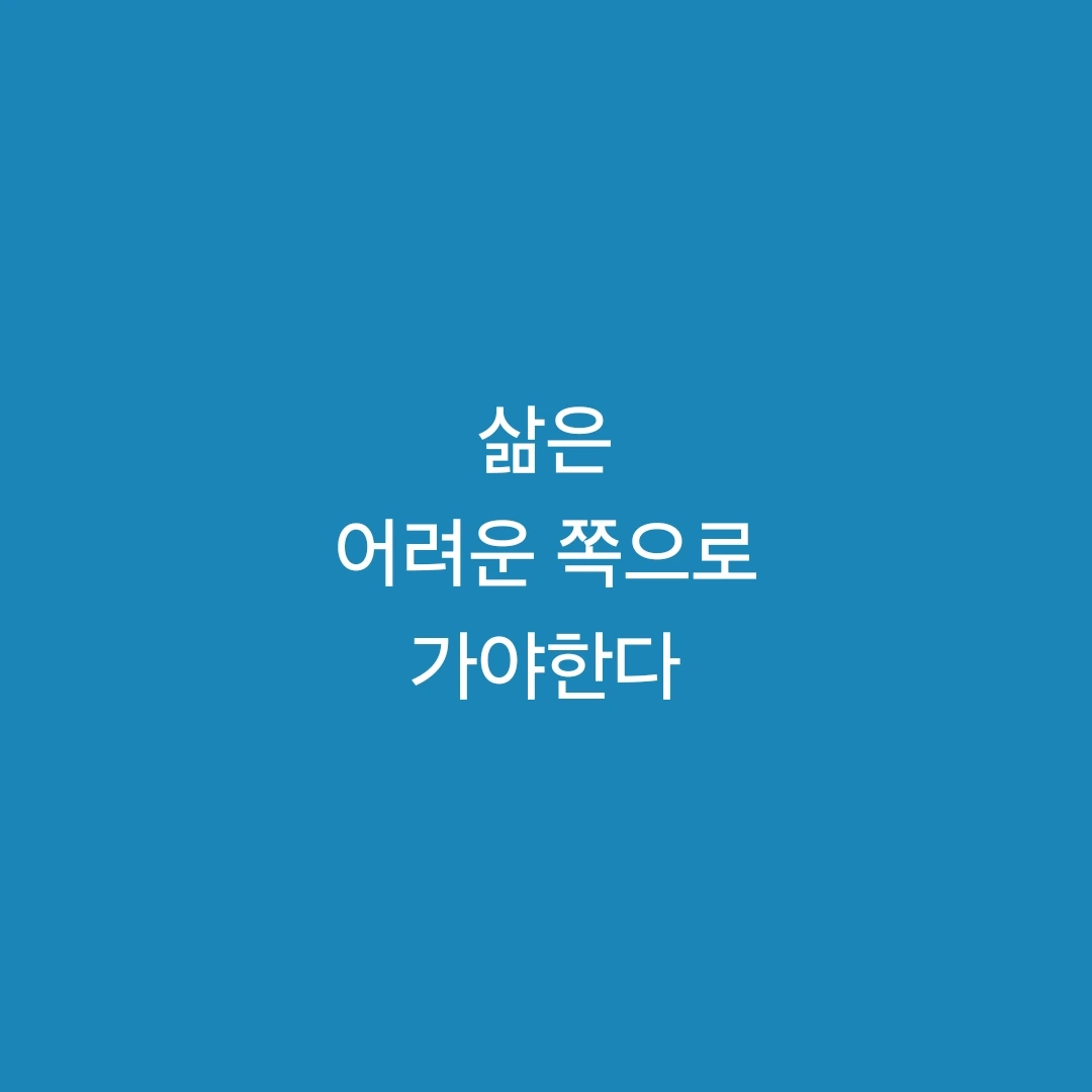 특히, 어려운 것은 단순히 '힘든 것'과는 구별되는 듯하다. 예를 들어, 단순히 매일 지옥철을 타고 출퇴근하는 건 확실히 심신이 지치고 힘든 일이지만, 내가 생각하는 '어려운 일'과는 묘하게 다르다. 힘든 건 매일 관성에 젖는 것도 포함된다. 오히려 어려운 쪽으로 나아가기 싫어서, 쉬운 것에 머무르다보면 삶은 장기적으로 더 힘들어질 수도 있다. 운동하기 싫어서 누워만 있다 보면, 몸이 더 힘들어지듯이 말이다.