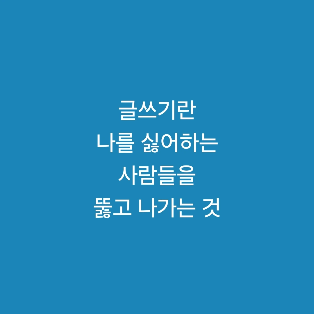 글쓰기에 대한 하나의 정의가 있다면, 나를 싫어하는 사람들을 뚫고 나가는 것이다. 우리는 살아가면서, 어떤 식으로 나를 싫어하거나 멸시하고, 왜곡하거나 험담하는 사람들을 만나게 된다. 나아가 그로 인해, 큰 상처를 받고 움츠러들거나 삶을 포기하기까지 하는 등 삶에 커다란 영향을 받기도 한다.