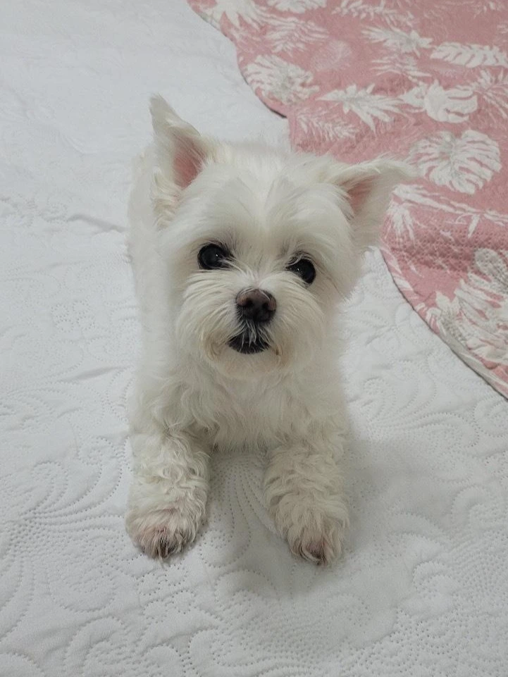 17살이면 제대로 걷지도 못하는 아이들도 있는 반면에, 다행히도 투비는 아직까지 열심히 5분 산책을 하고 있다. '눈물 자국'으로 유명한 몰티즈 종임에도 불구하고, 투비는 나이가 들어서도 눈물 자국을 보이지 않았다.
